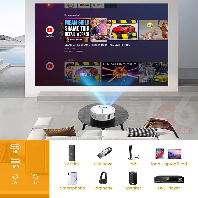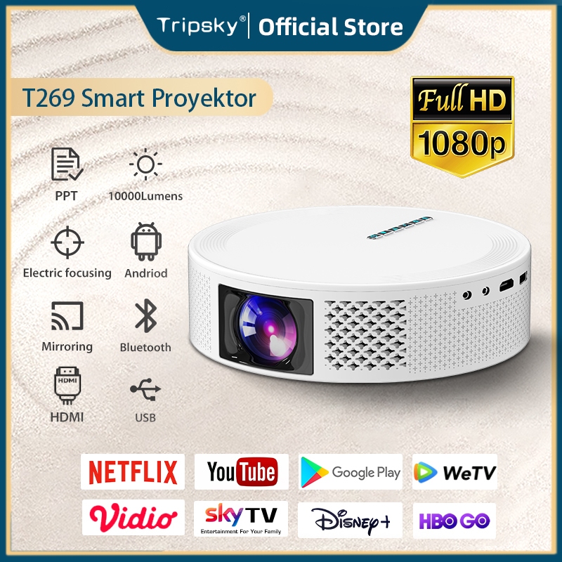 Proyektor Mini Android Tripsky Untuk Hp Layar Tancap Tv Digital 11.0 Infocus Projector Murah 2.4+5G Support 4K Portable