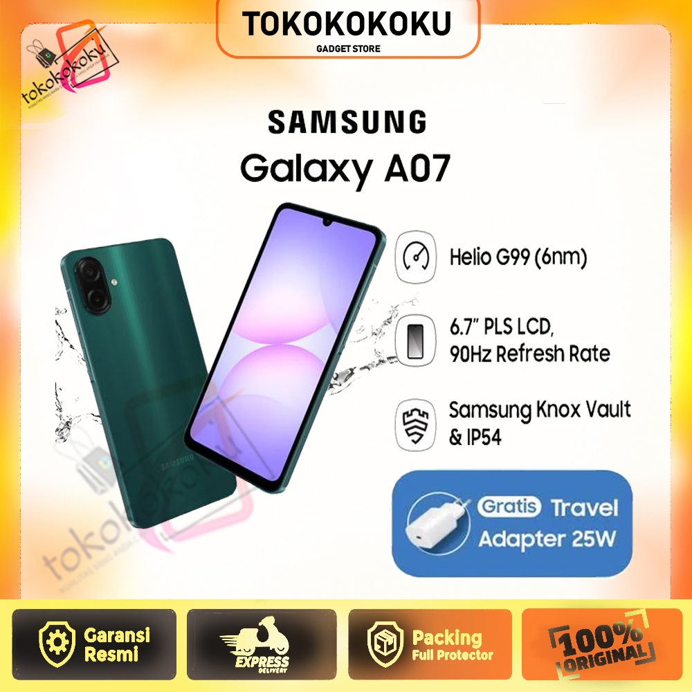 Samsung Galaxy A07 4G/LTE - RAM 4GB, 6GB, 8GB - Internal 128GB & 256GB - MediaTek Helio G99 | 50MP + 5MP | Layar 90Hz 6.7" PLS LCD, IP54 | Android 15 - GARANSI RESMI SEIN