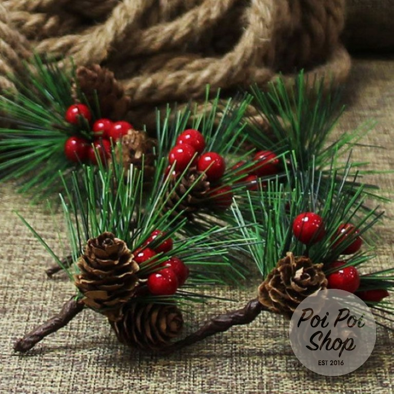 Bunga Tusuk Natal Pinus Ponsetia Cherry Daun Christmas Hiasan Parcel Hampers Kado Bunga Natal Ornamen Natal Termurah Bun