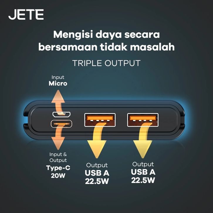 Powerbank C11 10000mAh Fast Charging 22.5W PD Power Bank Portable Triple Port USB Type C JETE