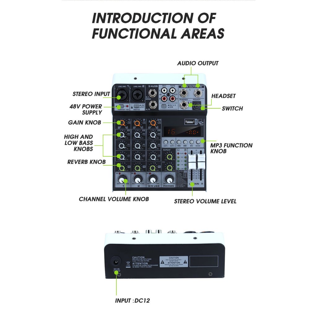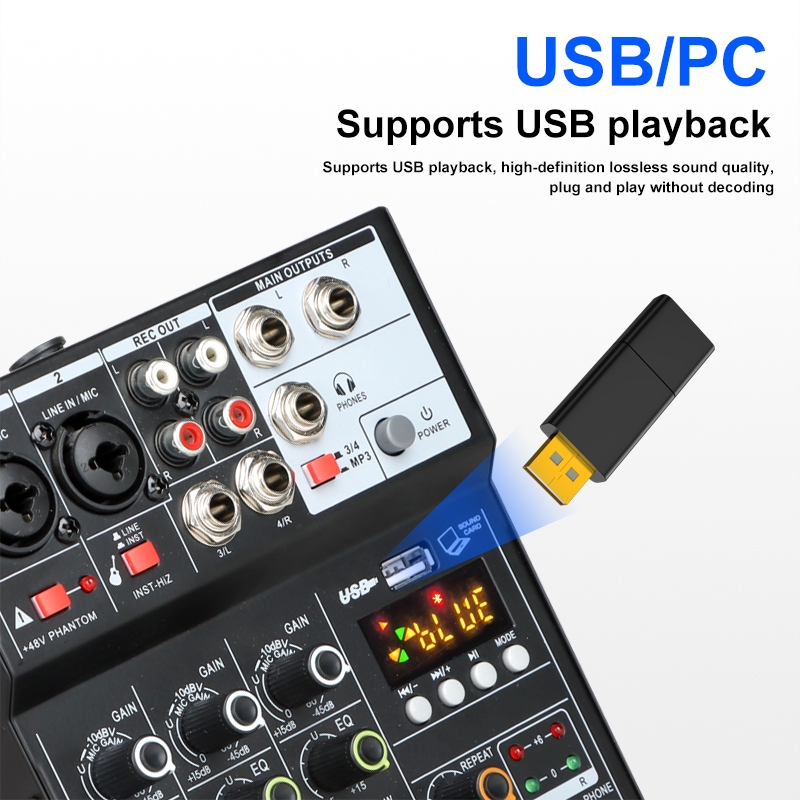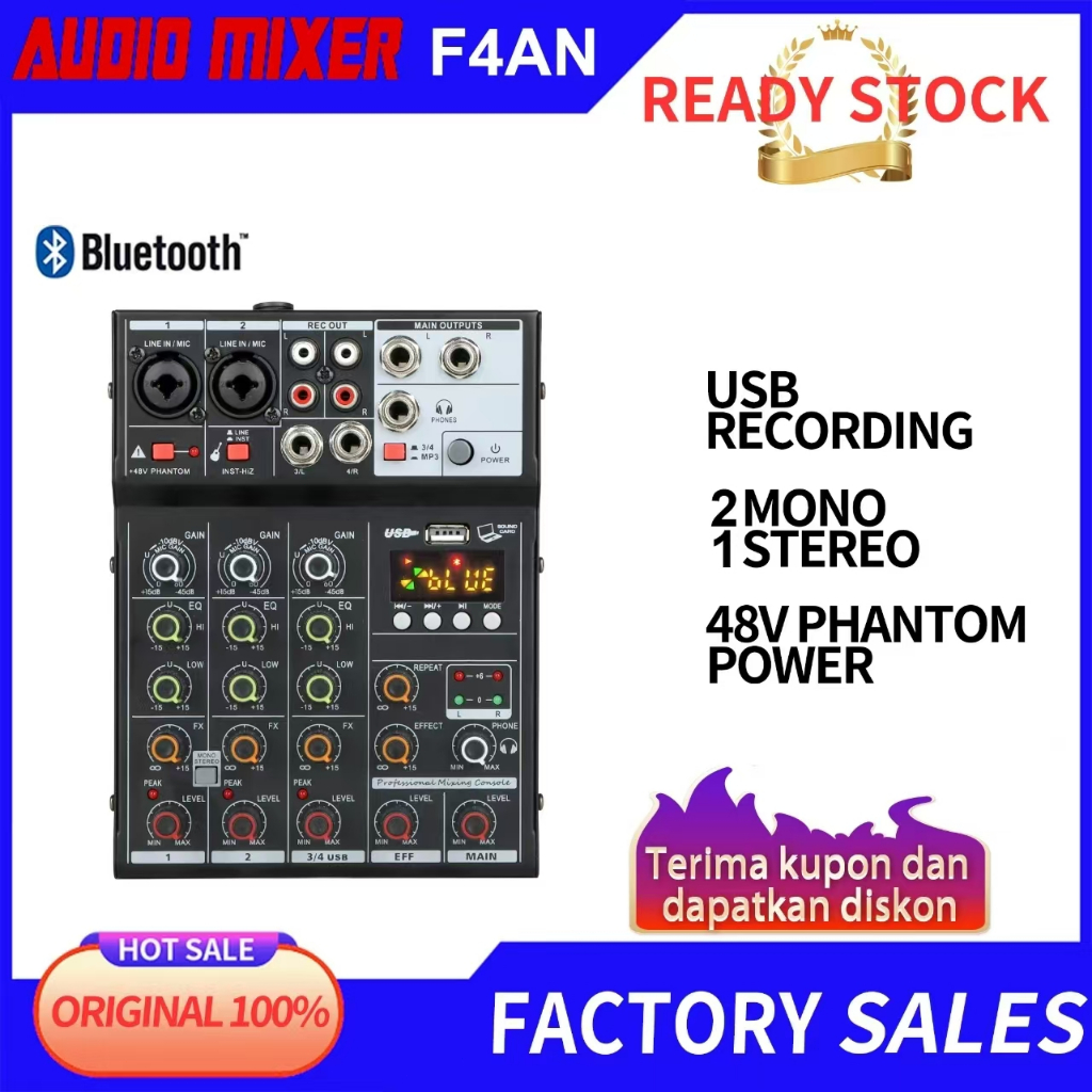 Aibedo F4A-N / KPOP4 4 Saluran Mixer Audio Empat Kartu Suara Pc Asli Bluetooth Usb Mp3 Dj Ktv Karaoke 48v Audio Konsol S