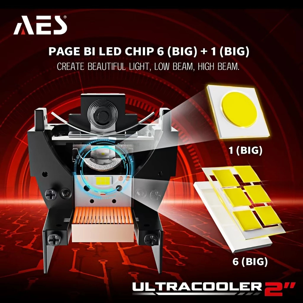 Bi-laser Biled Projector AES Turbo SE Ultra Cooler Square 2 Inch Kotak TIR Technology 70 Watt