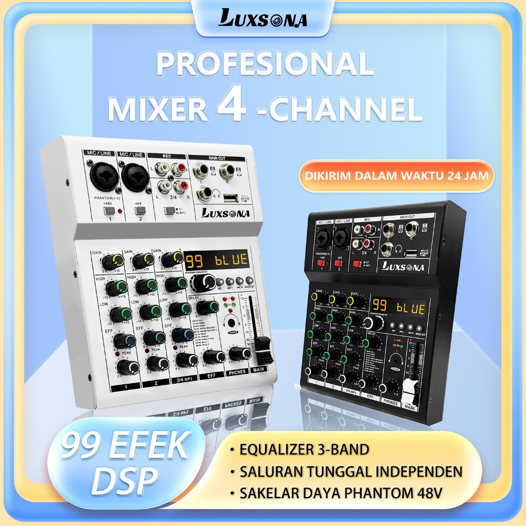 Mixer 4 Channel Audio Mixer 99-Bit DSP Effect USB Audio Interface Effects mendukung pemutaran Bluetooth USB MP3 for Home