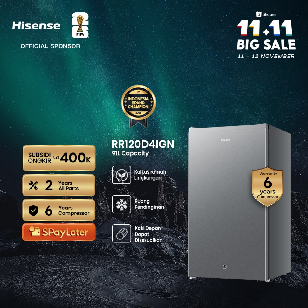 Hisense Refrigerator 91L RR120D4IGN - Kulkas 1 Pintu Silver Compact Size
