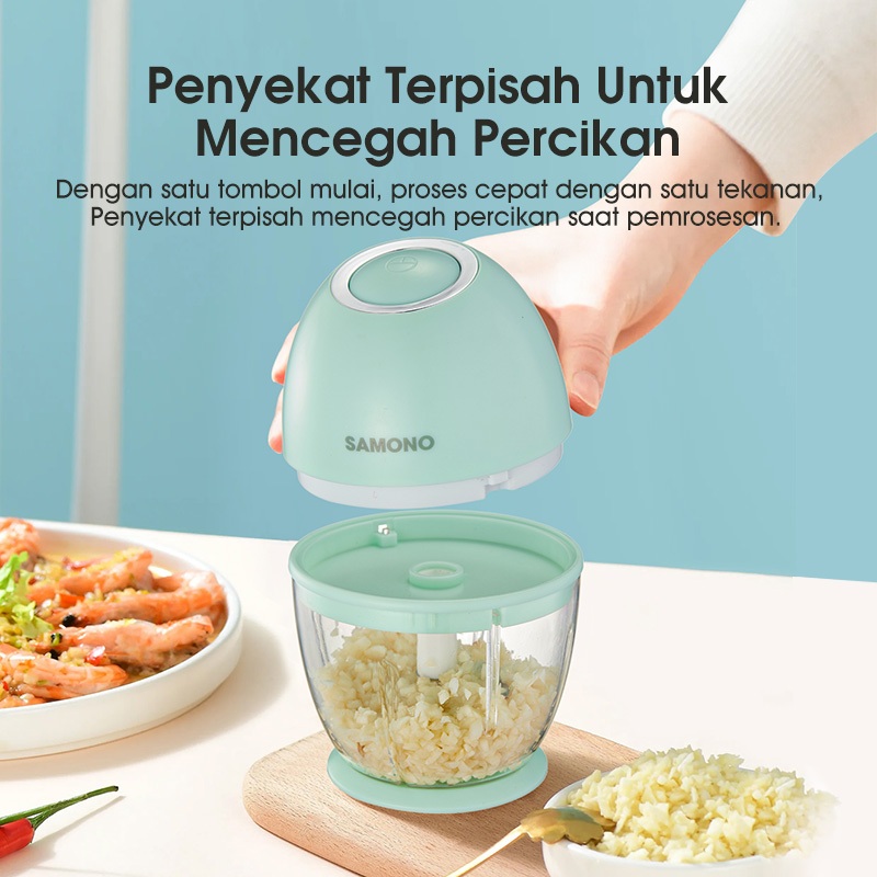 SAMONO CHOPPER BUMBU PORTABLE MENGHALUSKAN BUMBU DAGING MAKANAN KAPASITAS 450ML GARANSI GANTI BARU 1 TAHUN SW-L6 ORIGINA
