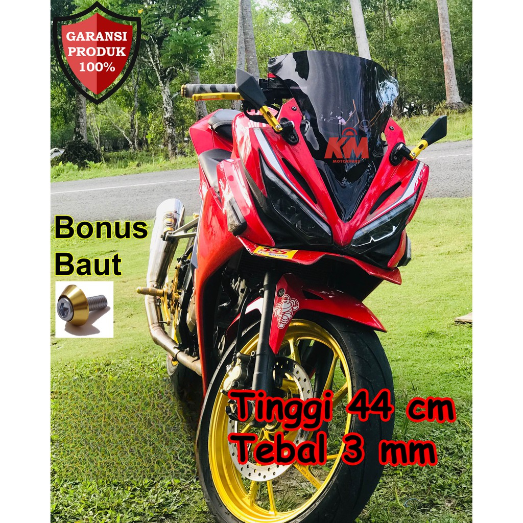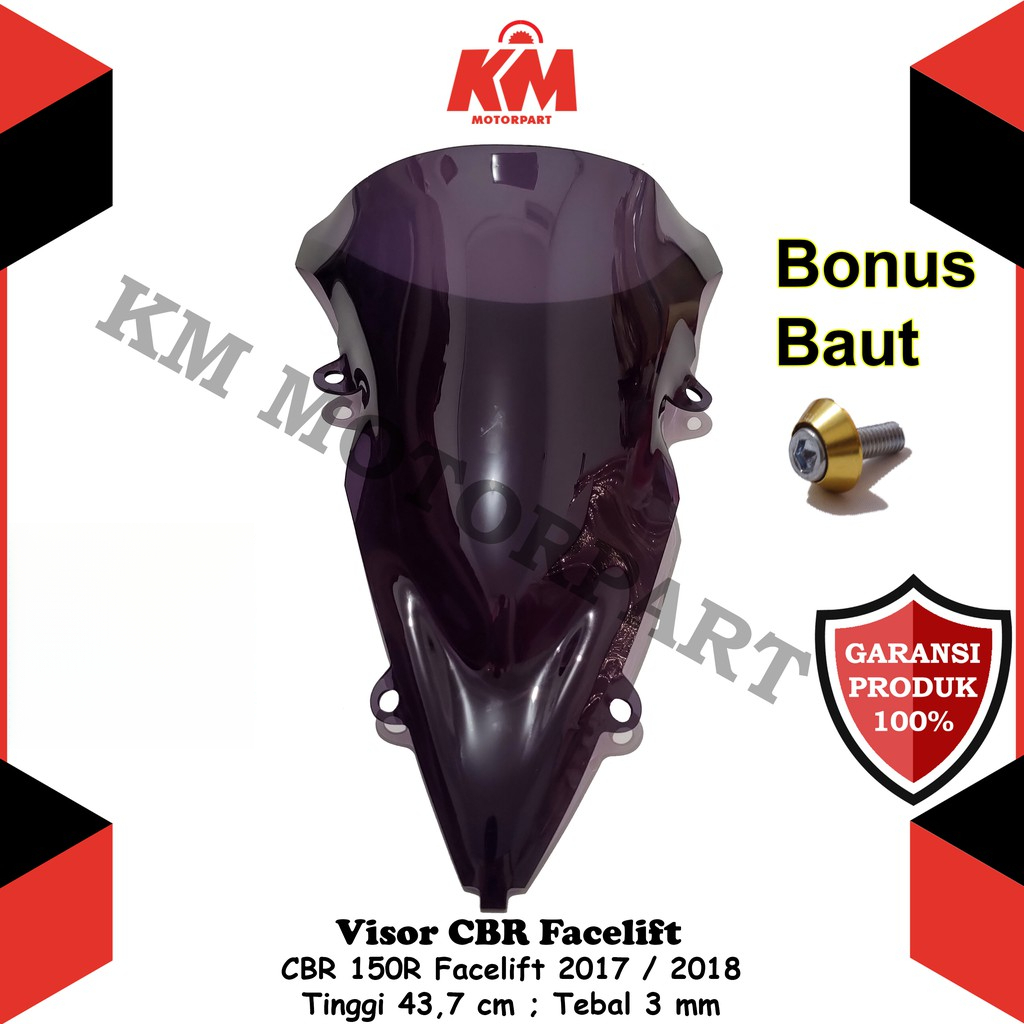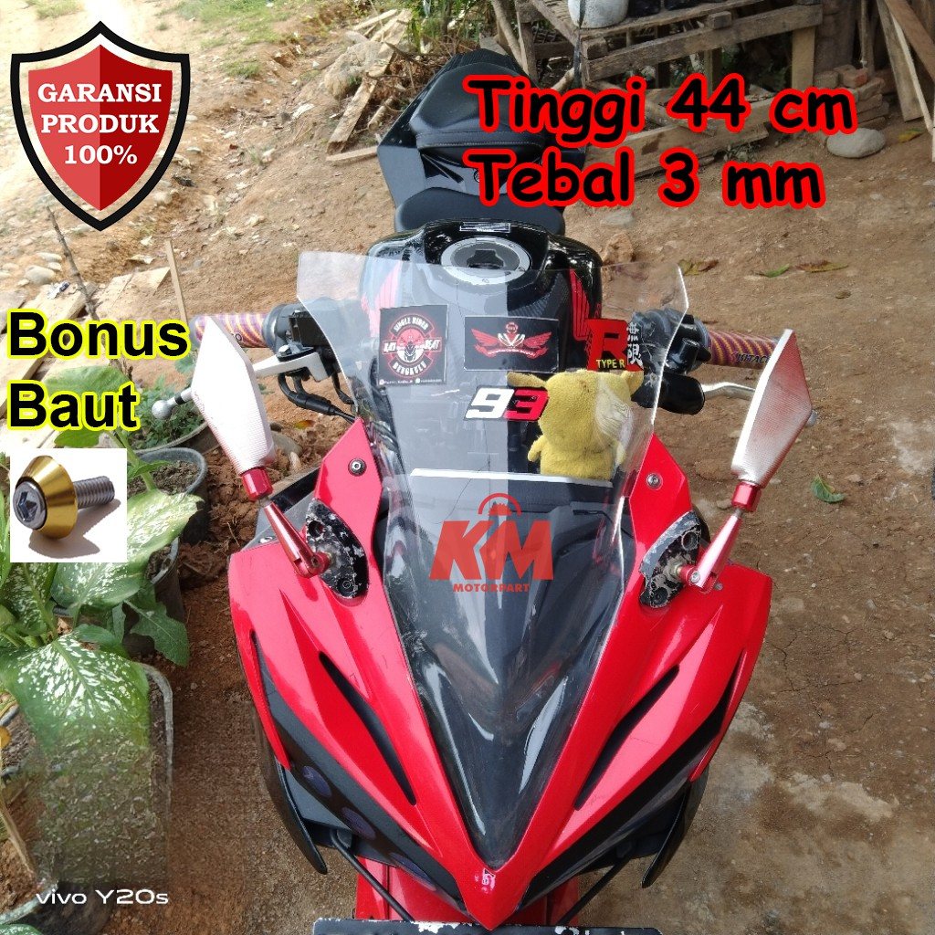 Visor CBR 150r Facelift 2017 2018 Jenong Tebal 3 mm Tinggi 44 cm Hitam dan Bening