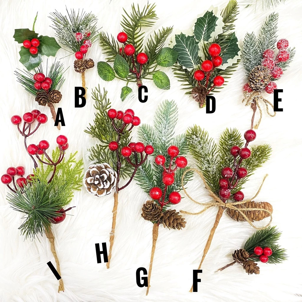 Bunga Pinus Hampers Daun Cherry Berry Rustic Hiasan Dekorasi Kado Parcel Natal Christmas Bunga Tusuk Poinsettia