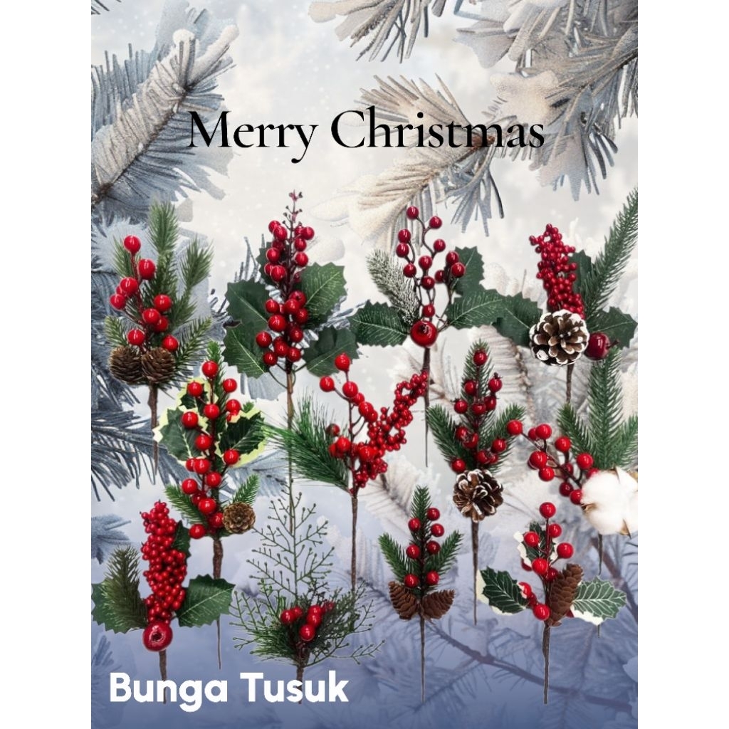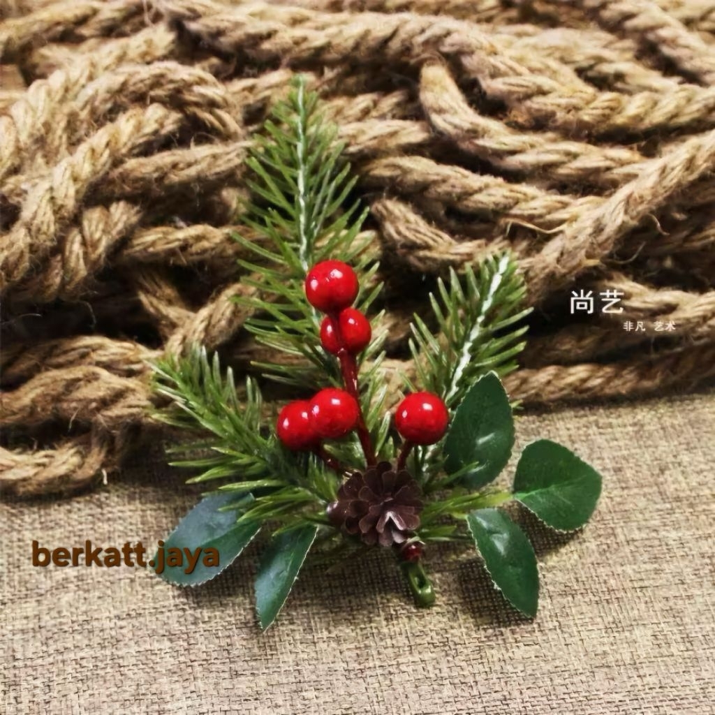 GROSIR bunga tusuk cheri daun natal hiasan parcel ornamen nataltusukan natal aksesoris natal