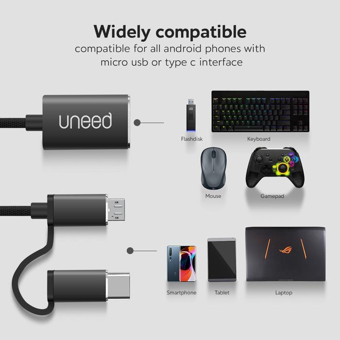 PREMIUM ! UNEED OTG 2 IN 1 TYPE C & MICRO USB TO USB 3.0 ADAPTER - UAT08AMC DEVICE STORAGE - BLACK ORIGINAL