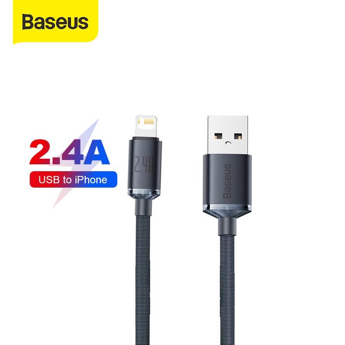 PREMIUM ! BASEUS CRYSTAL SHINE KABEL DATA IPHONE CABLE USB TO LIGHTNING FAST CHARGING 2.4A - HITAM ORIGINAL