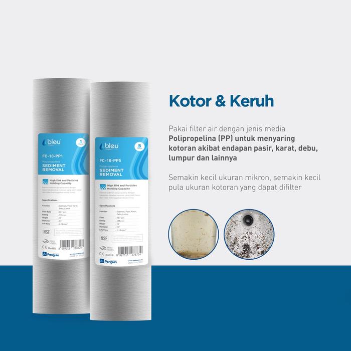 SALE !! PENGUIN BLEU CARTRIDGE FILTER AIR PP SEDIMEN 10 INCH - 5 MICRON TERMURAH