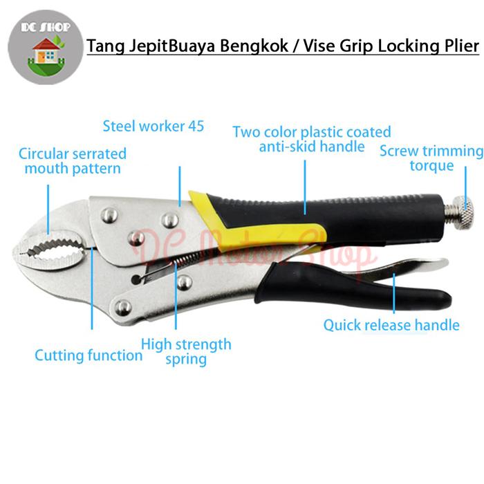LANGSUNG PROSES ! TANG JEPIT BUAYA BENGKOK 10" LOCKING PLIER CURVE VISE GRIP HEAVY DUTY - 7 INCH, DENGAN KARET ORI