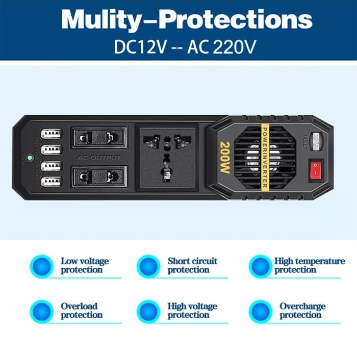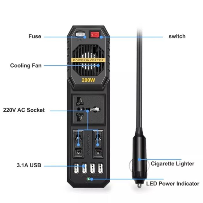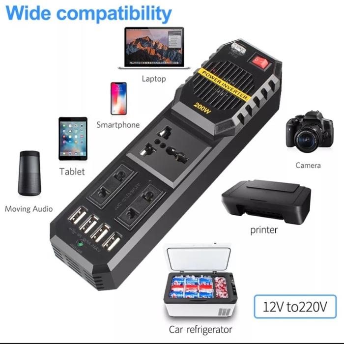 PALING DICARI ! CAR CHARGER 200W 12V POWER INVERTER ADAPTOR CONVERTER - CHARGER MOBIL TERMURAH