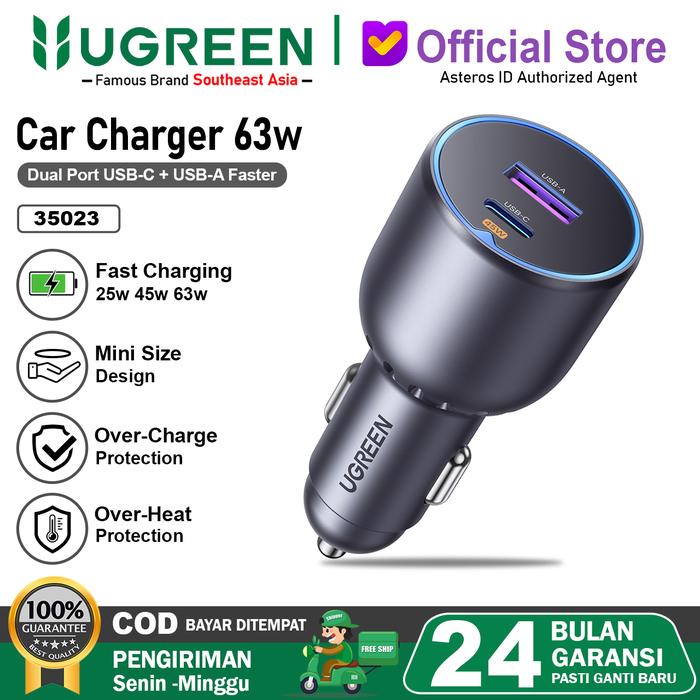 PALING DICARI ! UGREEN CAR CHARGER MOBIL 130W MULTI PORT USB TYPE C PD QC 4.0 90413 - 35023 63W TERMURAH