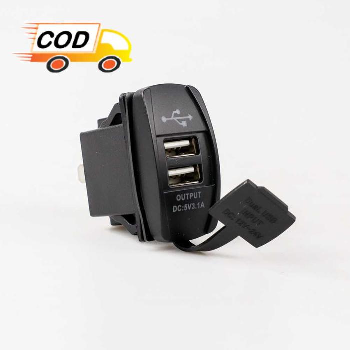 PALING DICARI ! CHARGER MOTOR HP USB 2 PORT 12V-24V CEPAT PENUH 3.1A AKI DC - HITAM TERMURAH