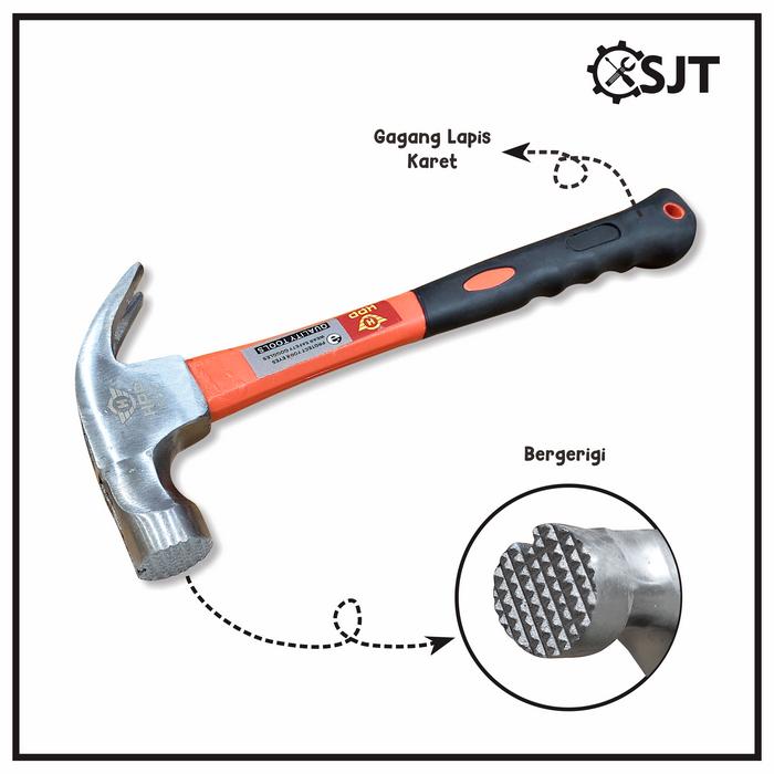REKOMENDASI SJT - PALU KAMBING BERGERIGI GAGANG FIBER CLAW HAMMER 8OZ 12OZ 18OZ HPP ANTI SLIP - 8 OZ (GERIGI HPP) ORI