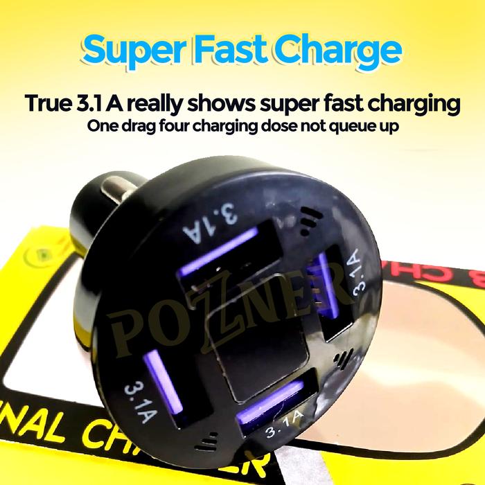 PALING DICARI ! CAR CHARGER DIGITAL 4 PORT FAST CHARGING 3.0 USB QUICK CHARGE CAR PHONE ADAPTER 66W 4 PORTS USB TERMURAH