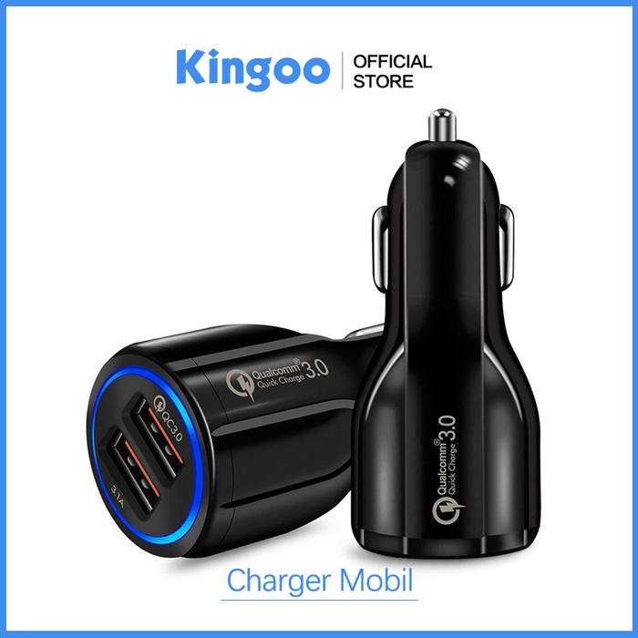PALING DICARI ! USB CASAN MOBIL CHARGER MOBIL FAST CHARGING 3.0 3.1A 2 PORT LED LAMPU - HITAM TERMURAH