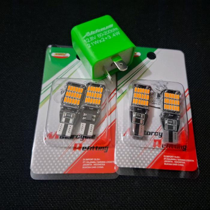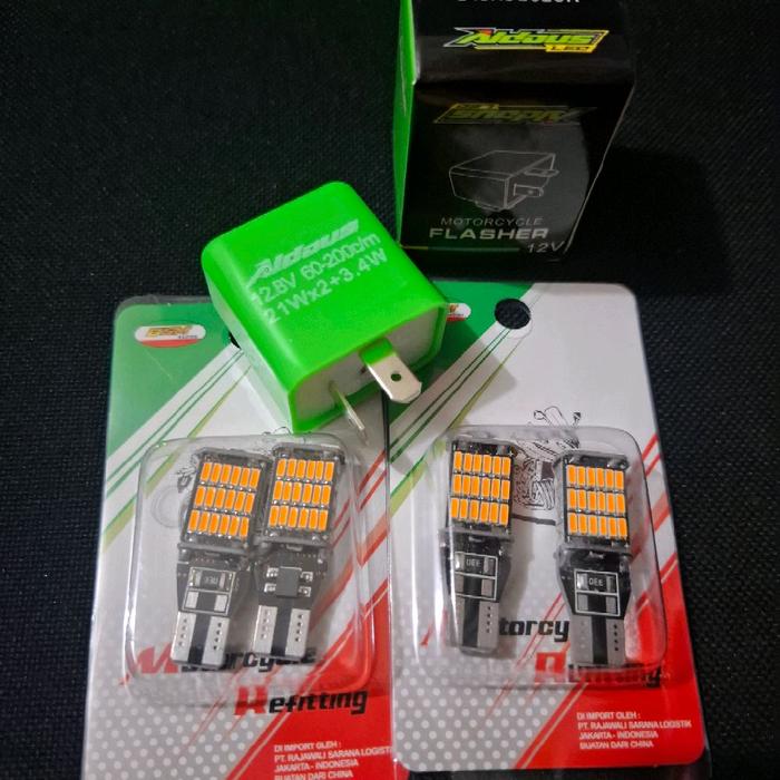 READY! PAKETAN 4PCS LAMPU SEIN DAJJAL T10/T15 + FLASER SEN ALDOUS SUPER TERANG LAMPU SEIN MOTOR MOBIL