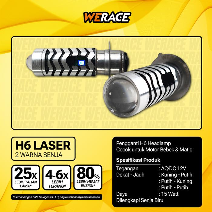 READY! WERACE HEADLAMP LED H6 D2 LASER 2 WARNA SENJA BIRU DUAL COLOR HI LOW WHITE YELLOW DEVIL BLUE - PUTIH-PUTIH