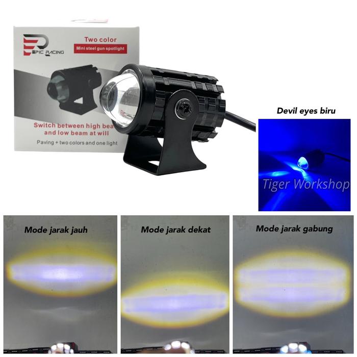READY! LASER FOGLAMP D2 PLUS DEVIL 4 MODE SUPERBRIGHT HIGH LOW MINI DRIVING LAMPU TEMBAK LASER - DEVIL BIRU, PUTIH-PUTIH