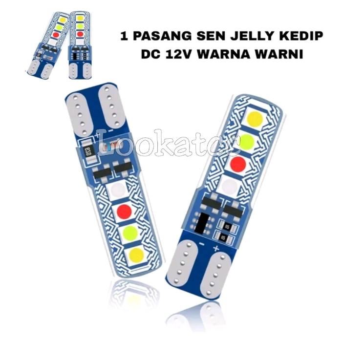 READY! SEPASANG LAMPU SEN JELLY 4 WARNA RUNNING & FLASH RAINBOW 12V T10 BISA UNTUK SEMUA MOTOR