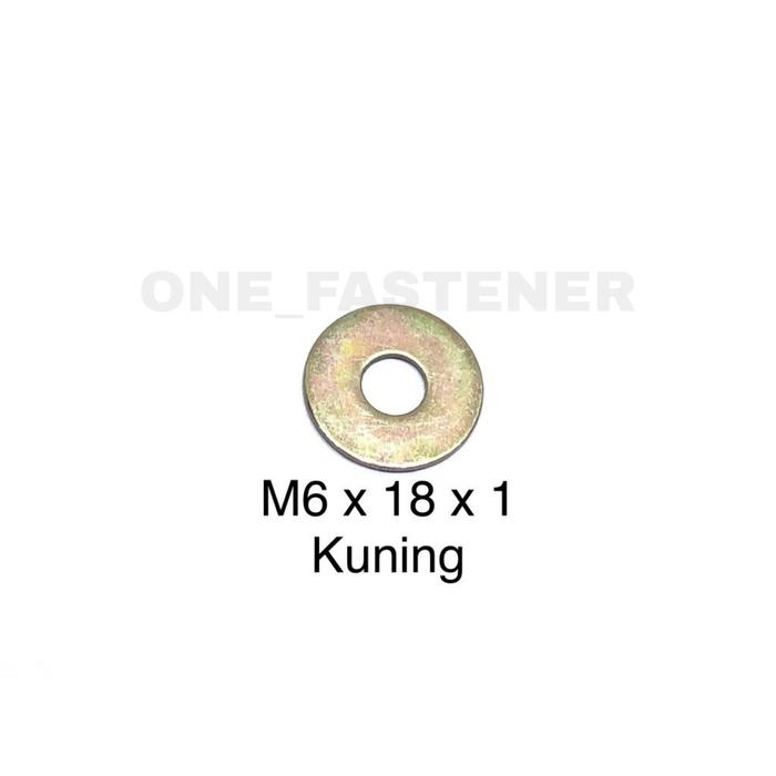 TERLARIS !! 100 PCS RING PLAT M6 LEBAR TIPIS KUNING M6X18 6MM 6MILI WASHER PLAT WP KUNCI BAUT 10 ORIGINAL