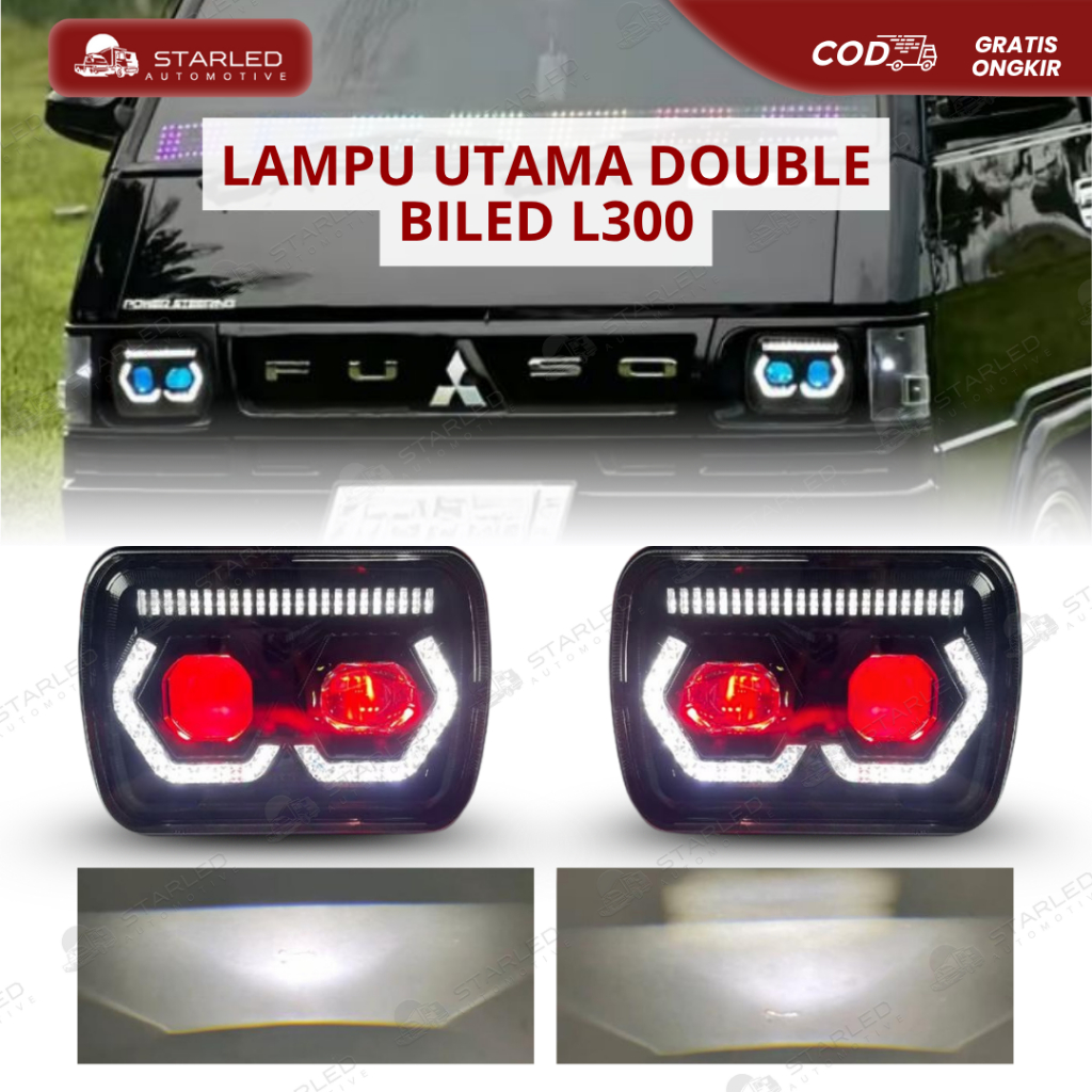 Lampu Utama Double Biled L300 Biled Devil Cahaya Flat Ukuran 5x7 inch Lampu depan L300 Taff