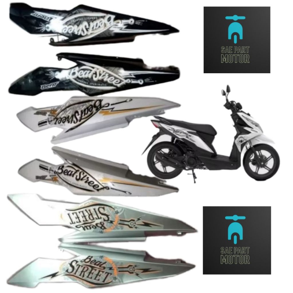 Cover Body Belakang Sett Kanan Kiri Honda Beat Street Plus Striping 2017-2019 Putih Hitam s1lv33r Hitam Doff