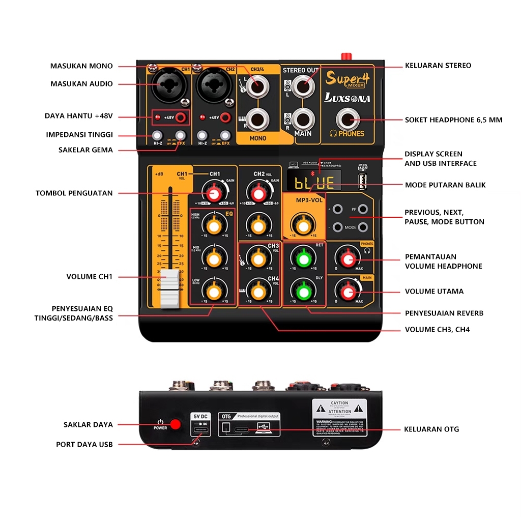 Mixer profesional 4 channel built-in EQ 16DSP Bluetooth/mixer audio digital mini/USB PC MP3 playback audio misker