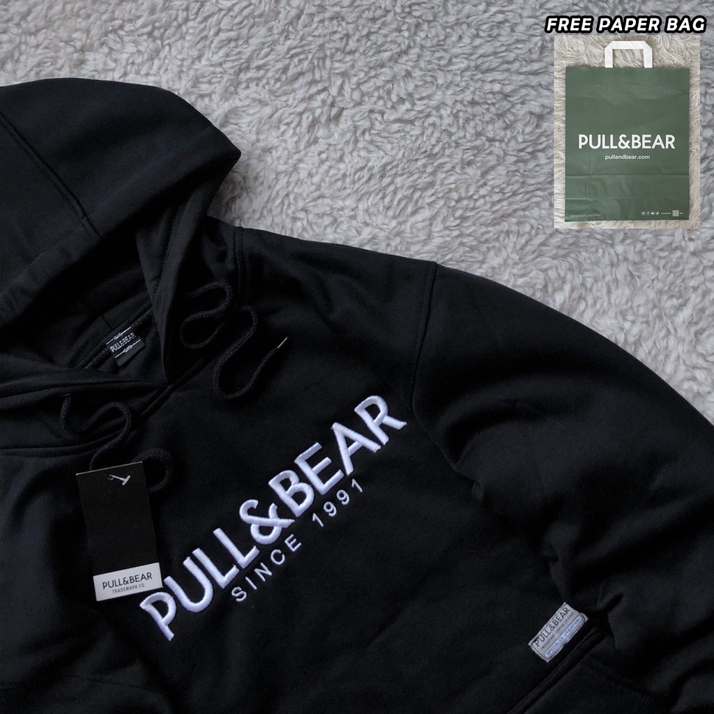 Free Paper Bag Hoodie Sweater Pull & Bear Loreng & Emboss 3D Font Timbul // Jaket Pull & Bear Sablon Timbul Full Lebel dan Hantag Termurah