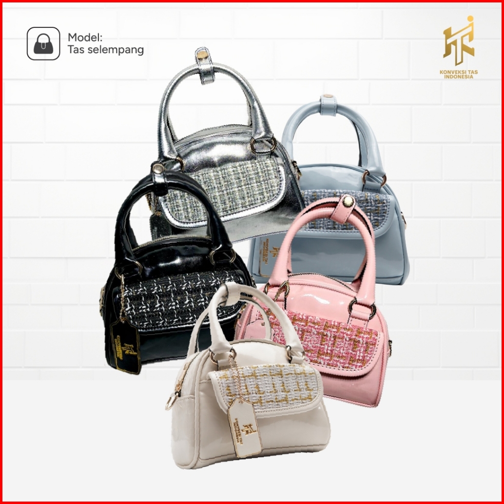 Kti Tas Verona Tweed Selempang Mini Kombinasi Bahan Kulit Pu Desain Compact