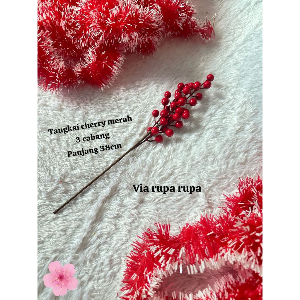 Hiasan Dekorasi Cherry Tangkai Chery Hias Natal New Year Artificial Flower 3 Cabang