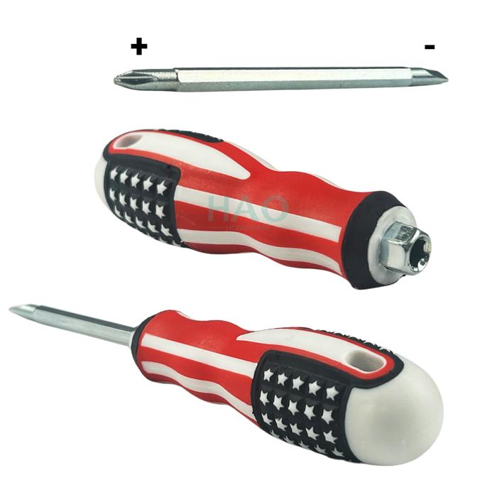 TERLARIS !! [HAO] OBENG BOLAK BALIK AMERIKA 5INCH GAGANG KARET / 2IN1 OBENG BOLAK BALIK - OBENG AMERIKA 2IN1 ORIGINAL