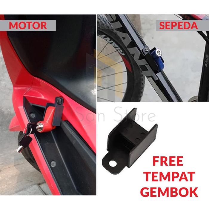 TERLARIS !! KUNCI GEMBOK CAKRAM MOTER & SEPEDA UNIVERSAL - KUNCI GEMBOK MOTOR, HITAM ORIGINAL