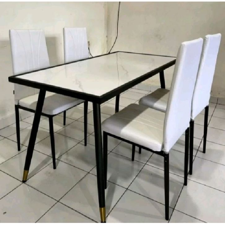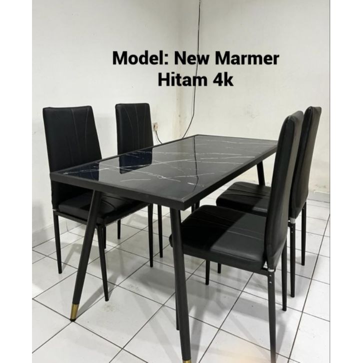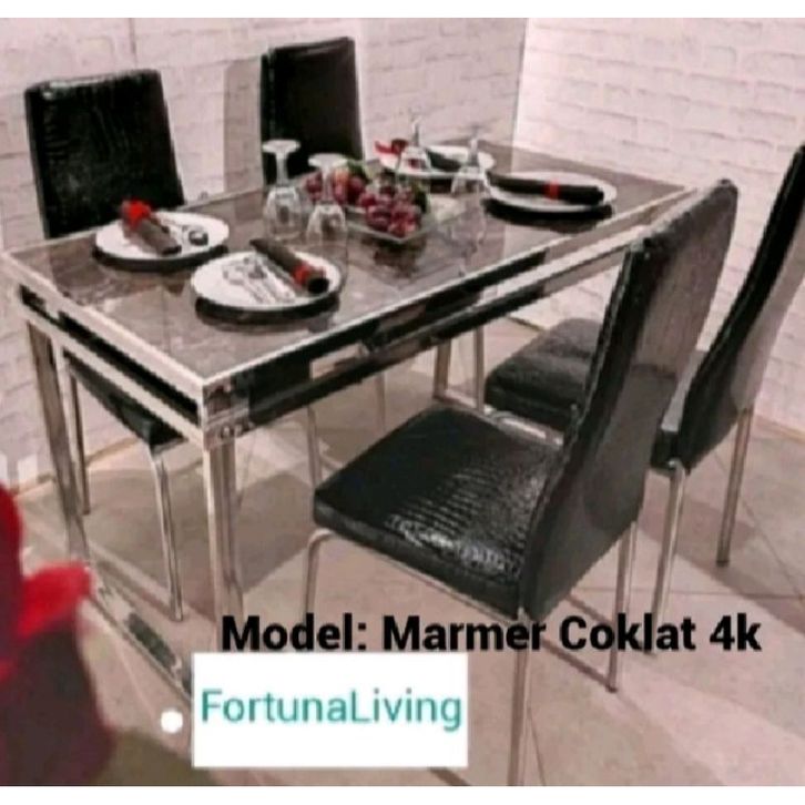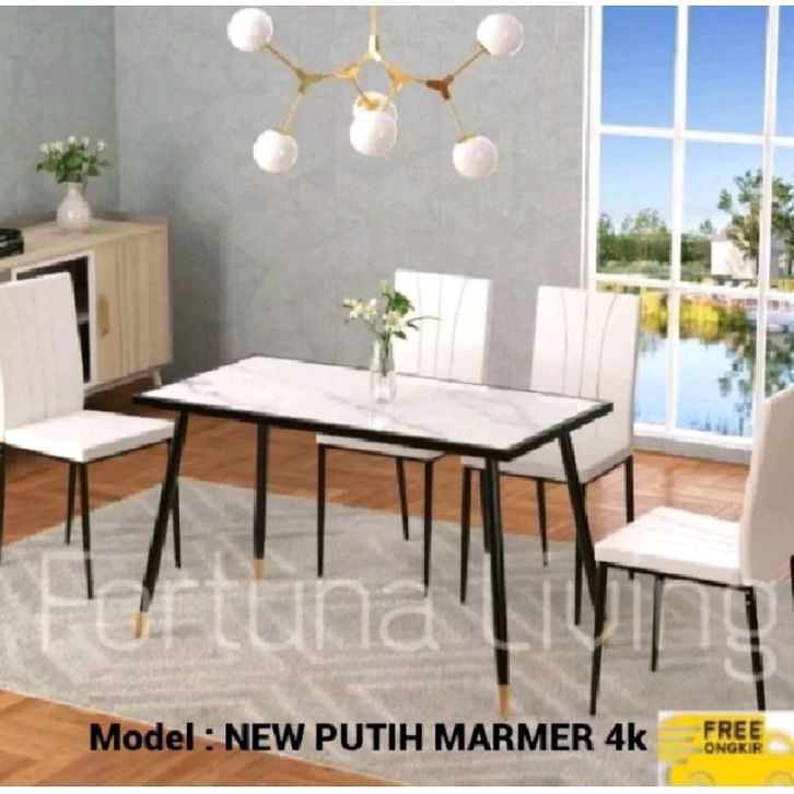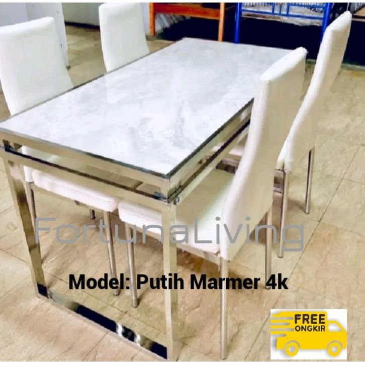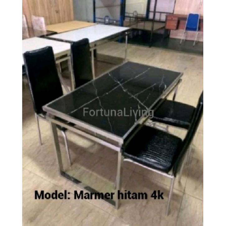 Set Meja Makan 4 Kursi Marmer Rangka Stainless Steel Besi Meja Makan Minimalis Termurah Best Seller FREE ONGKIR!!