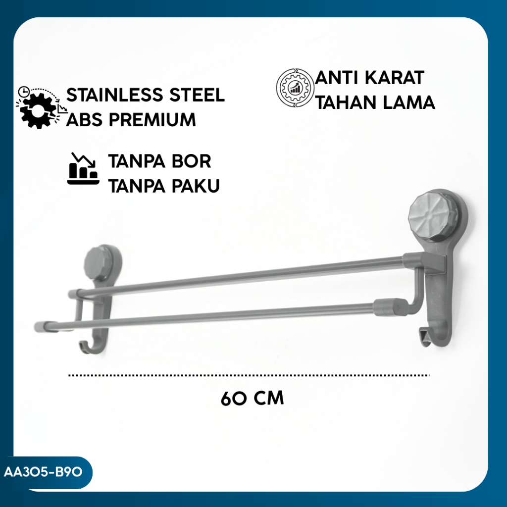 Rak Handuk Baju Gantungan hanger Dinding Kamar Mandi Anti Karat Tanpa Bor 40 50 60 CM AA305-B89