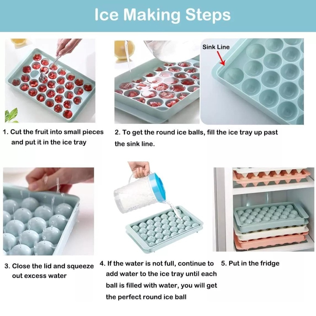 (8PCS) Cetakan Es Batu Bulat Ice Cube Ball Tray Mold Agar Jelly 33 Round Alat Pencetak Puding Cokelat Bentuk Bola