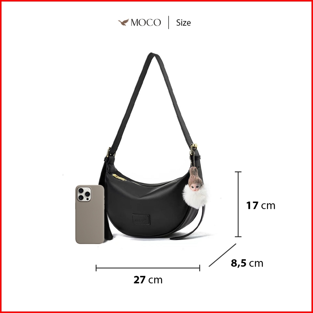 Moco - Nina Hobo Bag Fashion Tas Selempang Wanita Bag Charm Bulu Lucu Half Moon Sling Bag 2239 C