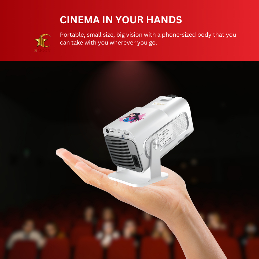 Proyektor Mini Android SMOON320 Untuk Hp Layar Tancap Tv Digital 11.0 Infocus Projector Murah 2.4+5G Support 4K Portable