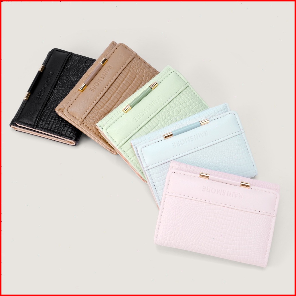 Rainsmore Dompet Wanita Lipat 3 Model Pendek Korea Warna Solid Kapasitas Besar Untuk Kartu Uang Koin