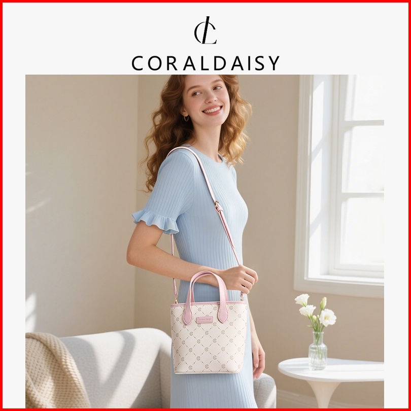 Coraldaisy Tas Wanita 2025 Terbaru Ember Tas Selempang Lucu Tali Panjang Sling Bag Ritslet Tas Bahu