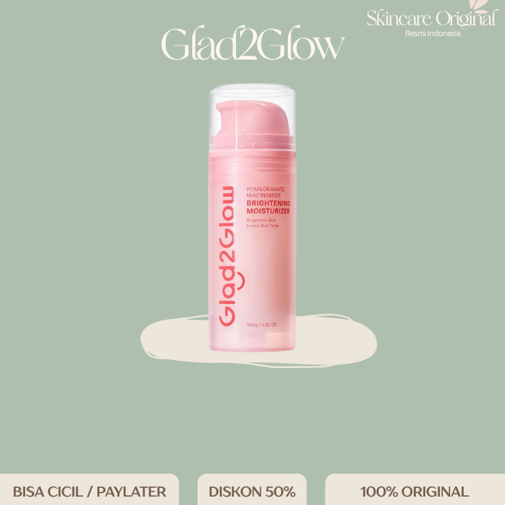 [Mall] Glad2Glow Glad 2 Glow Pomegranate Niacinamide Brightening Moisturizer 100g Mencerahkan Pemutih Kulit Pelembab