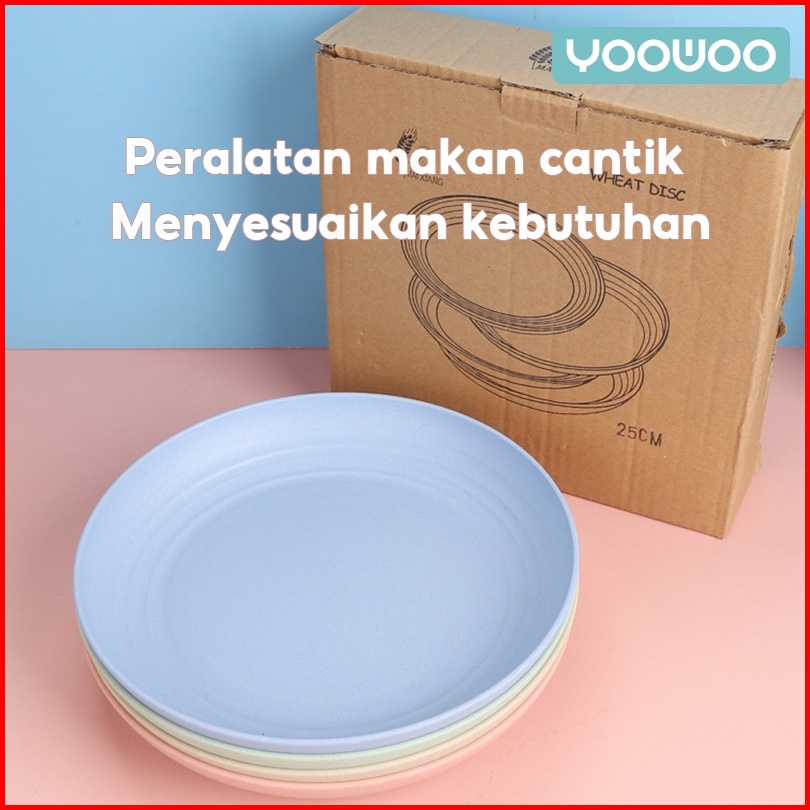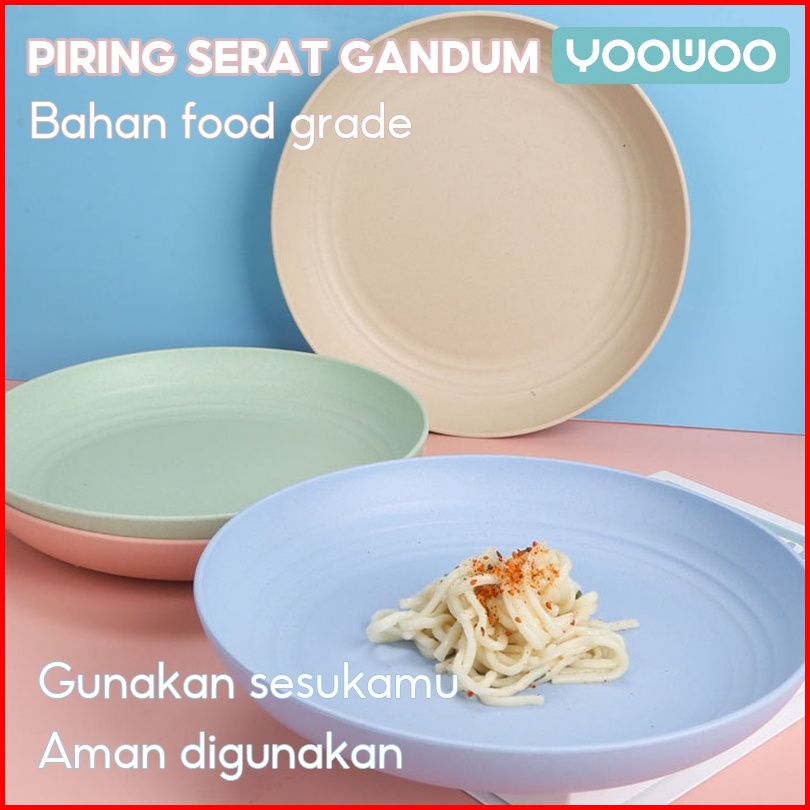 Yoowoo Piring Serat Jerami Wheat Straw Plate Piring Aesthetic Piring Saji Piring Makan Bpa Free Aman Dimasukan Microwave