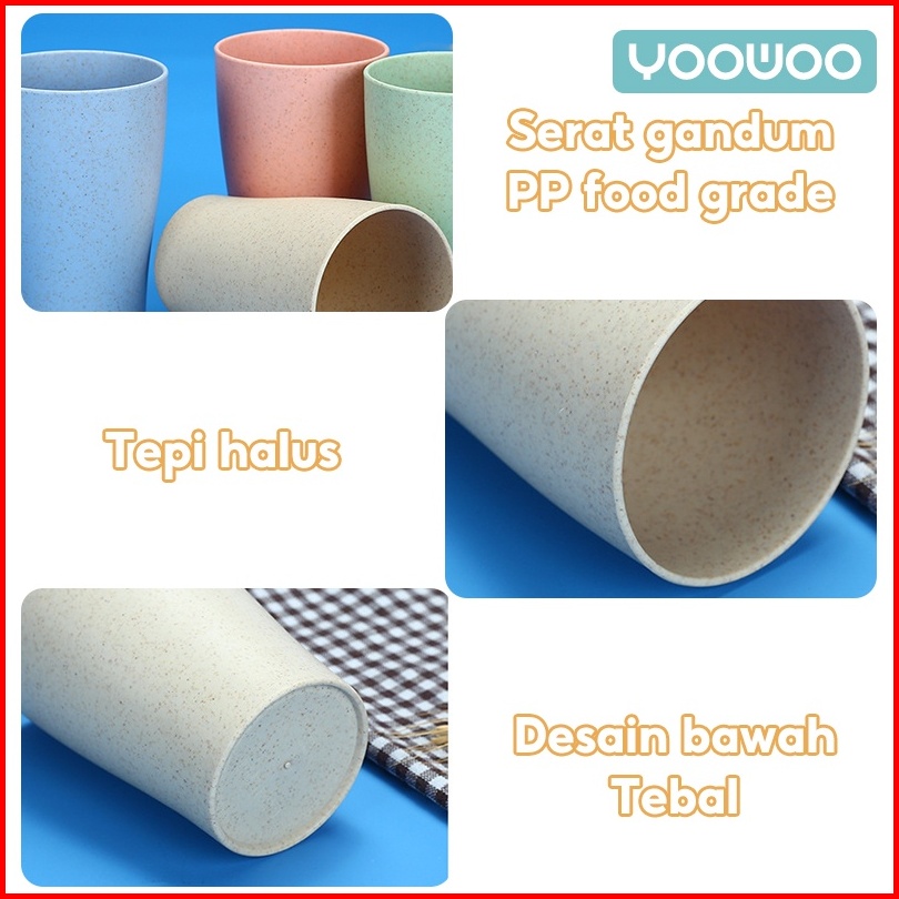 Yoowoo Gelas Serat Gandum Gaya Jepang Cangkir Dan Mug Kopi Eco-friendly Gelas Plastik Gandum Kokoh Ramah Lingkungan