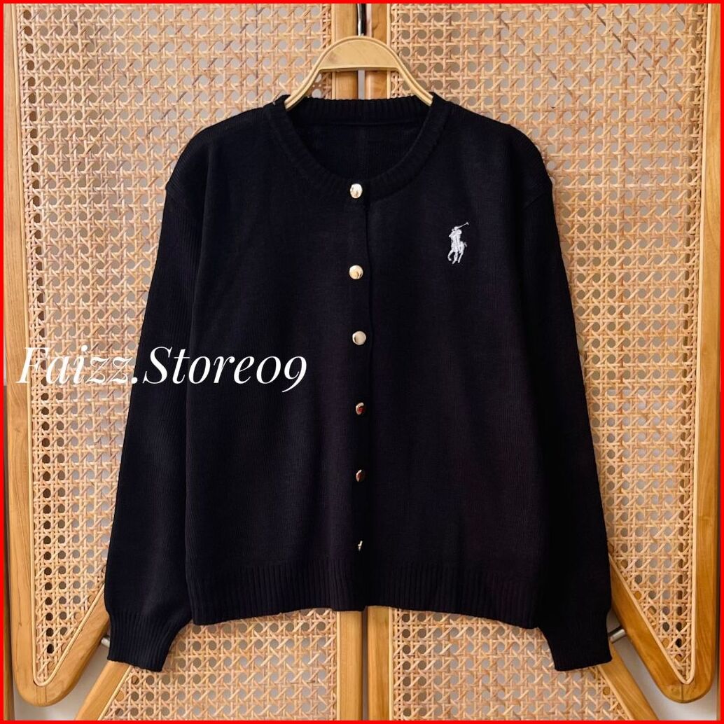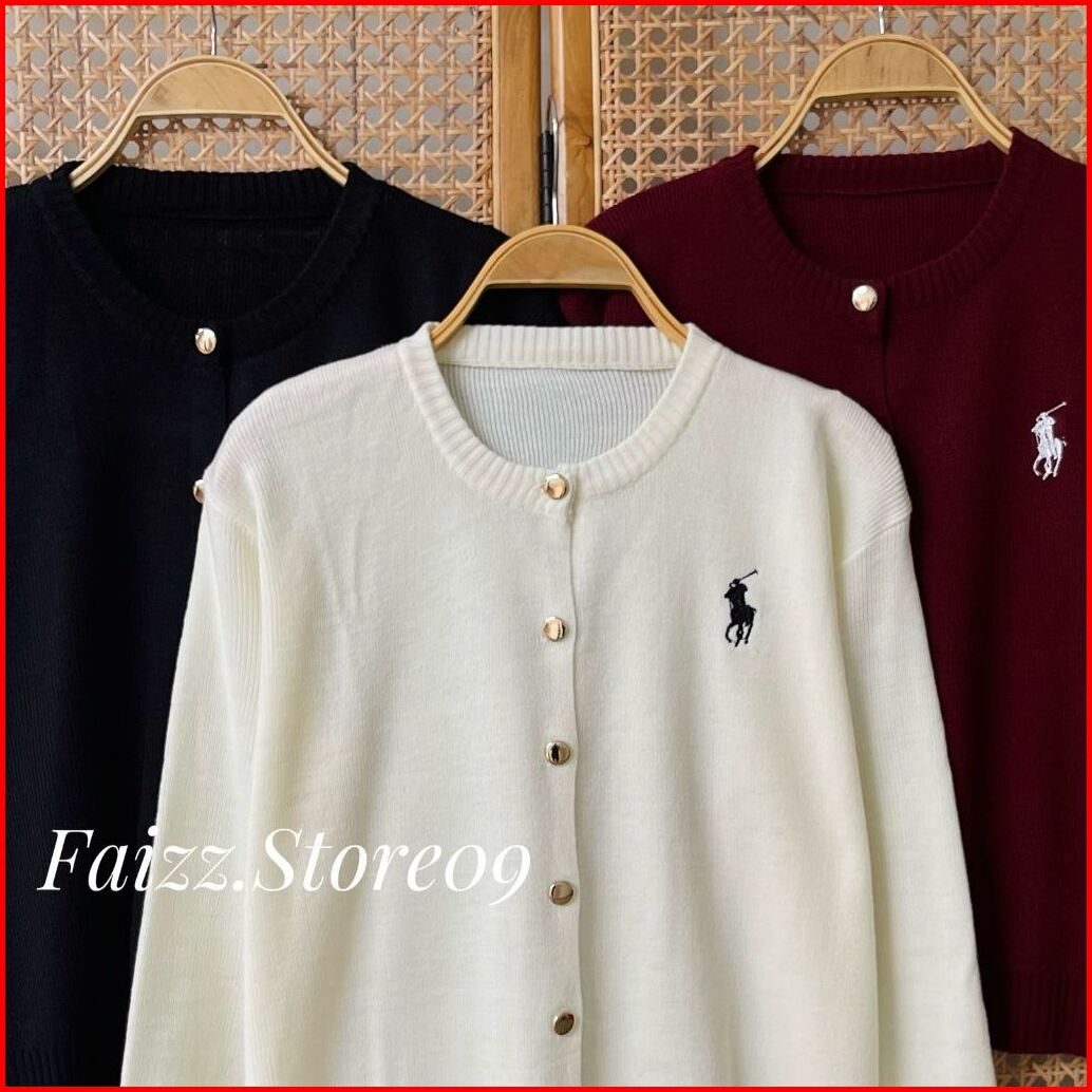 Nani Cardy Knit - Atasan Cardigan Rajut Kancing Polo Horse Motif Simple Bahan Lembut Korean Style