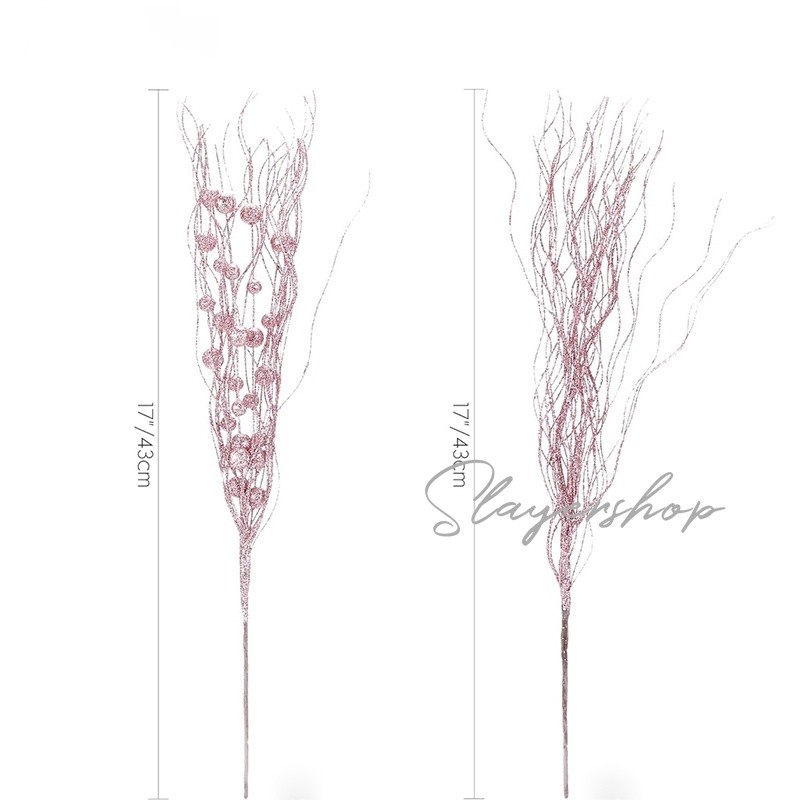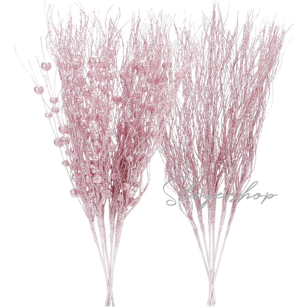 4PCS set Buah Hiasan Pohon Natal Buatan dengan Bunga Berkilau dan Batang BerriesDekorasi Natal dalam Bentuk Buket untuk