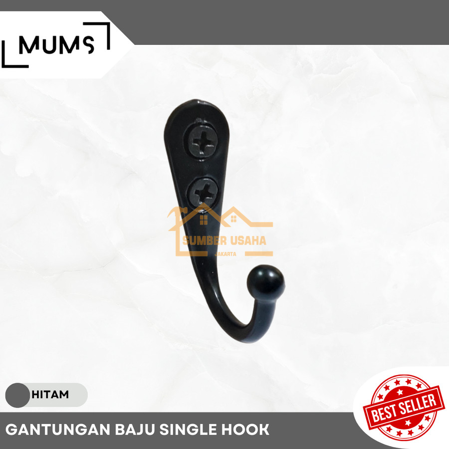 Gantungan Baju Dinding 1 Kait Besi Anti Karat Hook Tembok Multifungsi