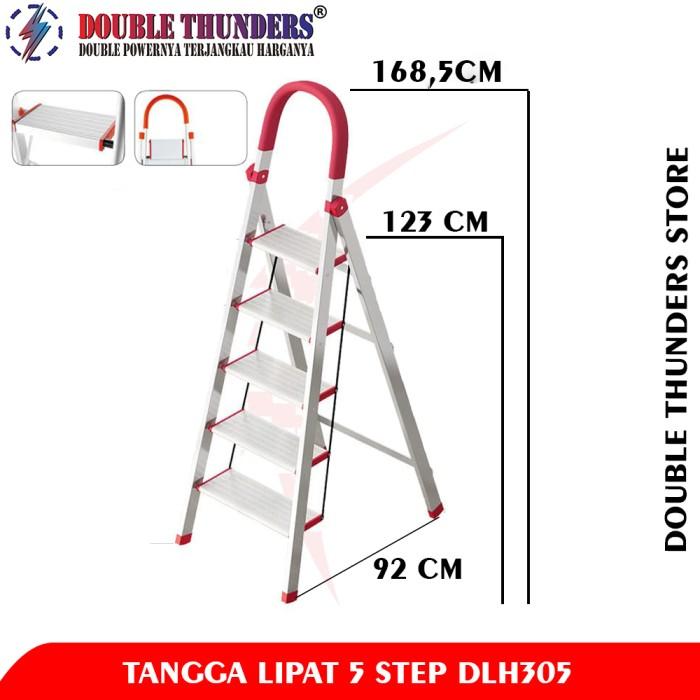 Double Thunders DLH305 Tangga Lipat Rumah House Hold Ladder 5 Step Kokoh Anti-Slip & Anti-Scratch 123cm Aluminium 150kg