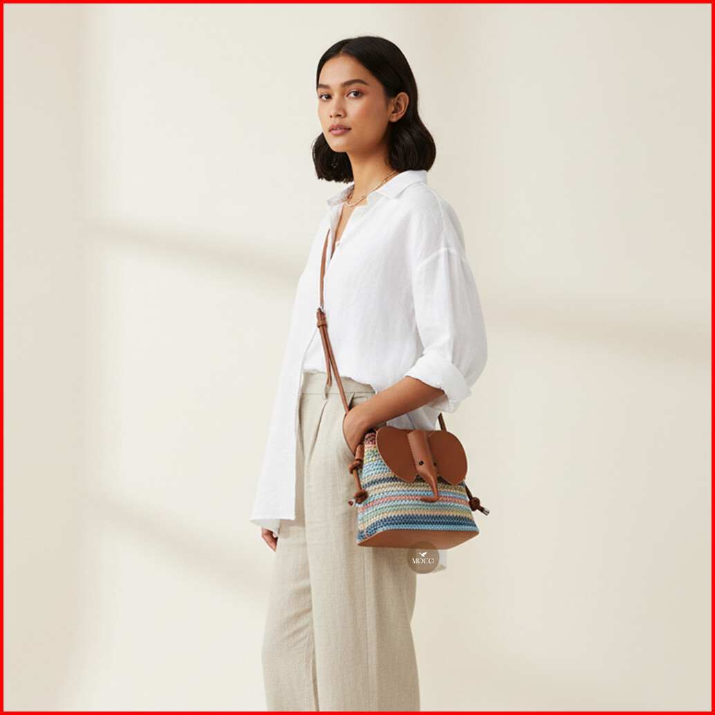 Moco - Raina Bag Fashion Tas Sling Bag Wanita Tas Selempang Bentuk Gajah Motif Rajut Tali Adjustable C10